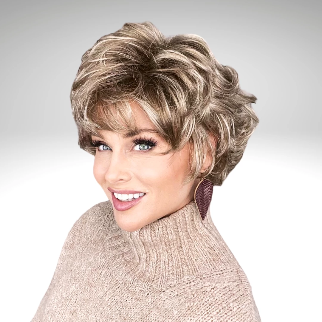 Connie by WigPro is a short, wavy and voluminous piece with a sexy side. Connie has a lot of volume built-in and a ready to wear synthetic wig. She has an open cap for coolness.