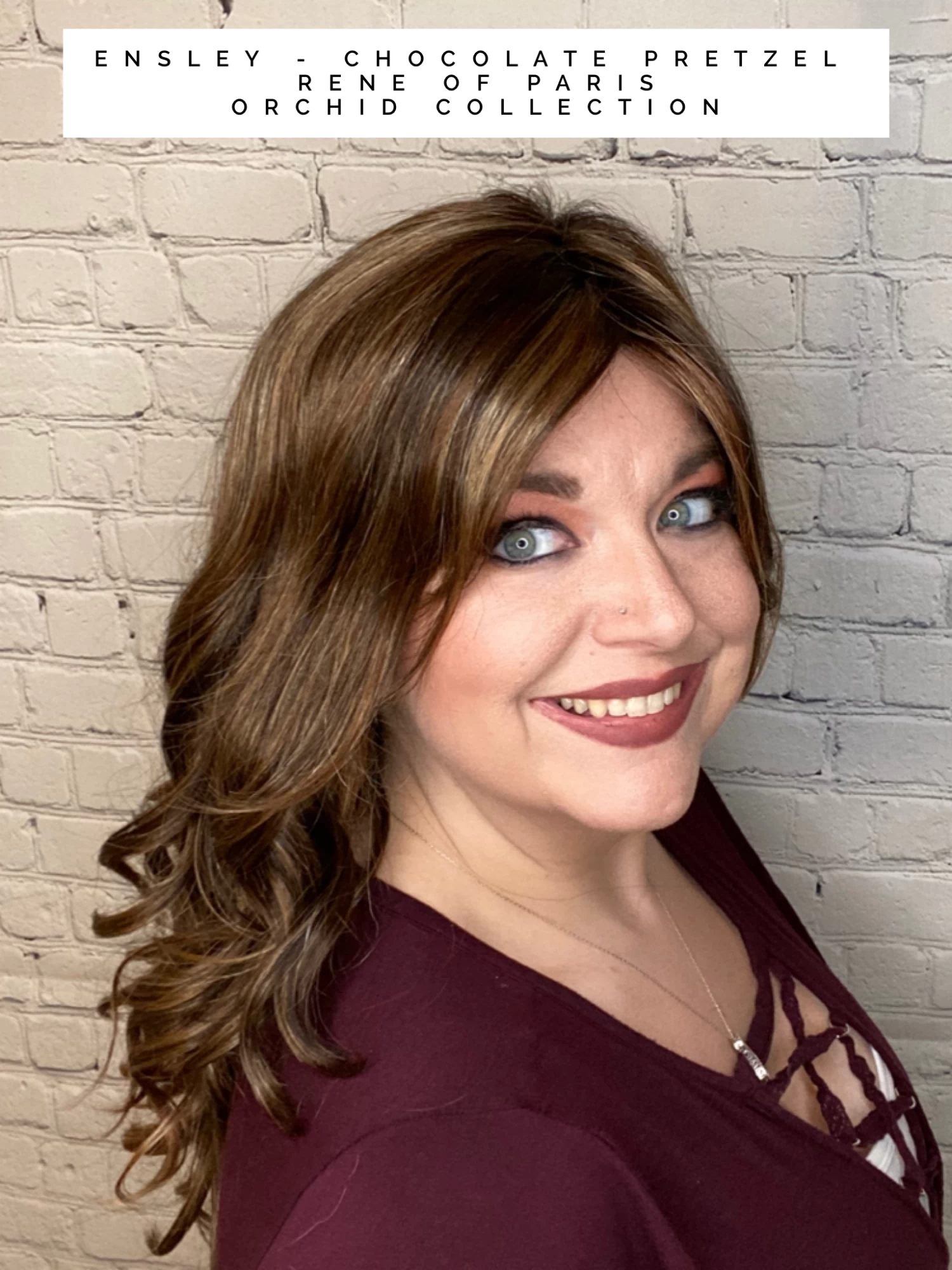 Ensley from The Orchid Collection is a mid-length synthetic wig. This wavy ready-to-wear wig is a salon blow-out-inspired style with long side swept bangs and soft curls. This trendy wig is a lace front and lace part. Its lace front will give you a natural look with the lace part cap. Ensley cap construction has adjustable tabs in the back nape area to allow a more comfortable fit. The result is a comfortable fit with a natural look that is both fashionable and easy to wear.