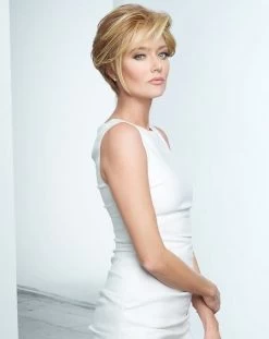 This flattering favorite you’ll turn to time and again – day or night! This versatile chameleon of a style complements any outfit thanks to its features that you can “zhuzh up.” Its flexibility also allows you to wear this style smooth and polished. It has a hint of length around the face, and a monofilament part that extends to the crown with a cute texture at the nape.