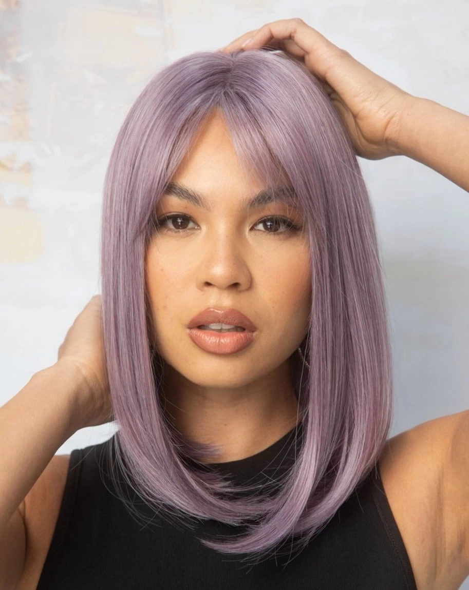 Mod Sleek from our Muse Collection is a mid-length high heat wig. This Limited Edition ready to wear wig is a straight mid length style with soft fringe. This mid-length style paired with a soft fringe is a staple in any collection. Mod Sleek has a lacefront/lacepart with adjustable tabs in the back nape area to allow a more comfortable fit. The result is a comfortable fit with a natural look that is both fashionable and easy to wear.