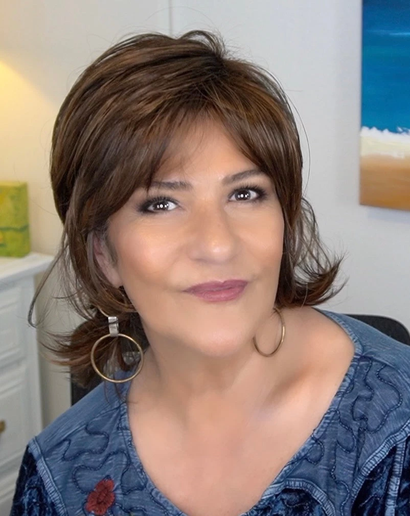 Beautiful luscious layers and soft delicate bangs are what make Natalie a timeless beauty. This style is a great look for anyone with an oval, heart, pear or oblong shaped face.