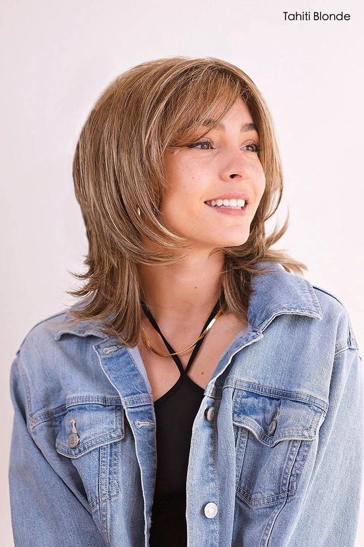 With shoulder-grazing layers, Nicki can create truly unparalleled looks. Shoulder length lob cut suits every face shape and can be tailored to any situation from when you need a chic and sophisticated style for work, to a playful date night look. Layers are a great way to add body, thickness, movement, and dimension. With curtain bangs and textured ends. Style can be worn to frame your face or off to the side to show off the natural hairline with our RTW LaceFront technology. This shag looks amazing with ease of styling.