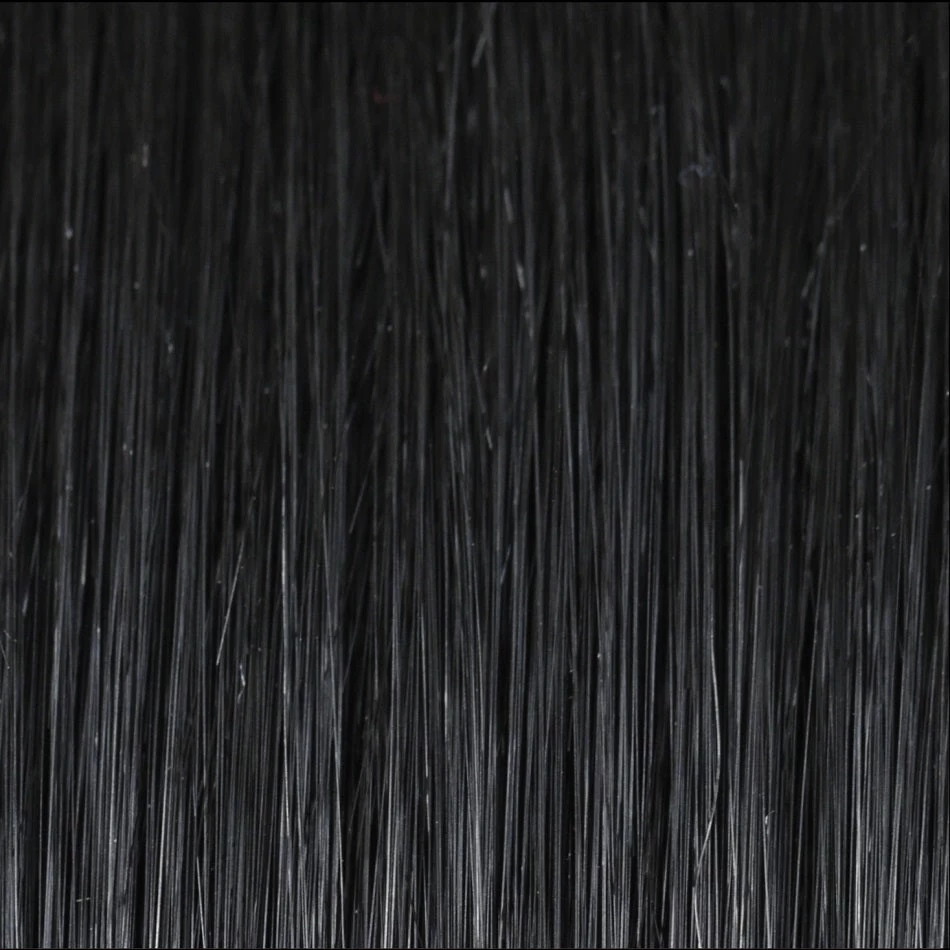 Silky straight smooth layers of low-density strand-by-strand Style-Able Effortless™ synthetic fiber is double hand knotted into a sheer monofilament lace front cap for a natural part anywhere and undetectable hairline.