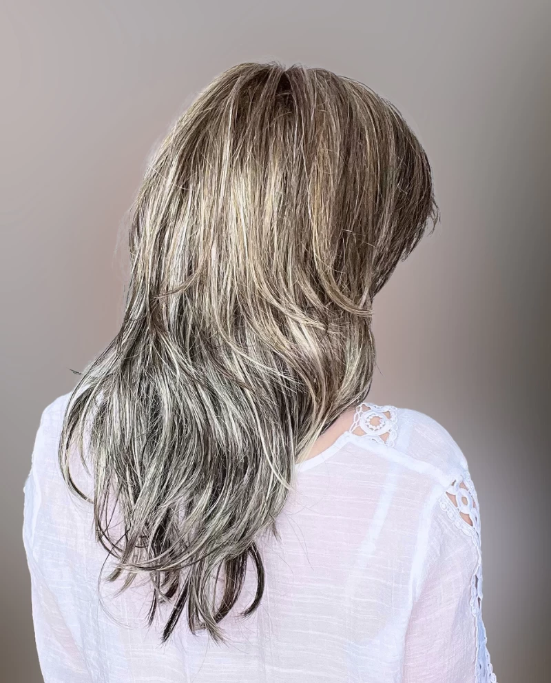 Sophie is a modern and sexy style that adds face-framing layers with a side-swept bang and beautifully natural movement.