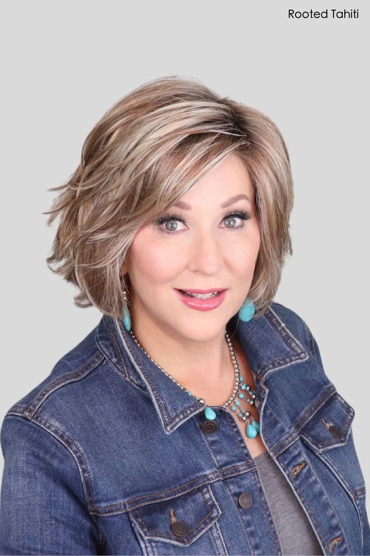 Starly is a short shaggy Bob with beachy waves and layered side bangs. Short, natural, shaggy, and modern Starly is the hairstyle trend of 2021 at its best. Comes in a Ready-to-Wear LaceFront HeritageCap with our exclusive 100% Certified Synthetic EluraBlend Fiber.