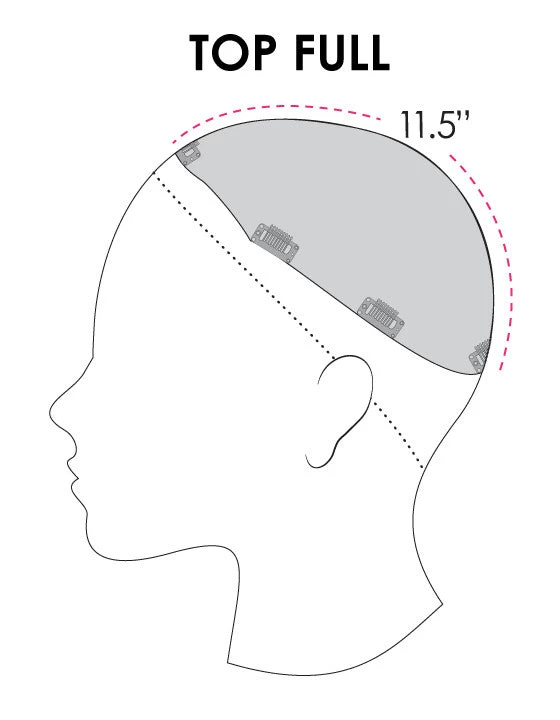Designed with the comfort of a 100% hand tied stretch base, this mid-length Remy human hair volumizer is worn over the entire crown, providing the most coverage of any clip in topper.